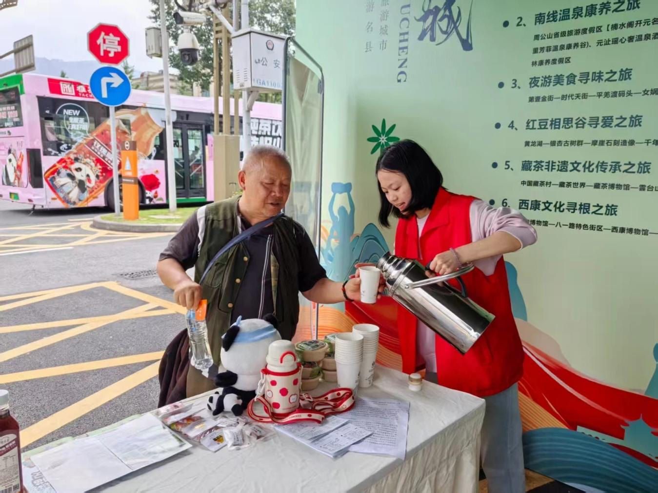 假日中的雨城,不僅井然有序,更洋溢著濃厚的節日氛圍。從政府機構到城市公園均閃爍著雨發展公司前線員工忙碌的身影。在濱江文化綠廊、桃花島公園、金熊貓廣場等重要公共空間,燈籠高掛、紅旗飄揚,天幕休息區巧妙點綴其間,配備舒適的桌椅,為市民與游客提供了舒適而富有美感的休憩場所及公園景觀;熊貓綠島公園、桃花島公園、濱江綠廊公園等區域共設置了6個志愿服務站,提供及時、周到、溫暖的志愿者服務,精心構建起一張“無死角”的城市服務網絡。